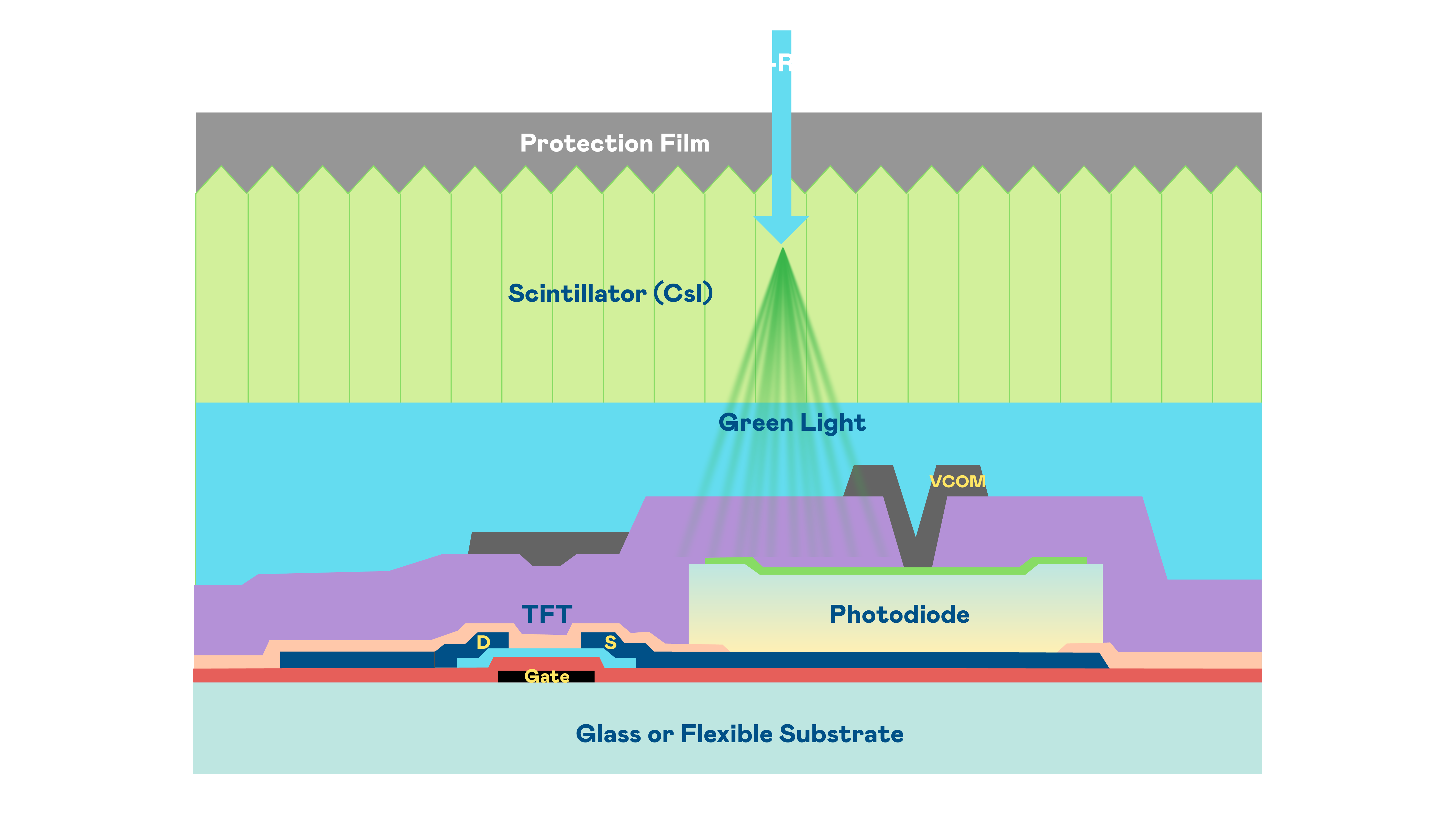 91nba高清免费观看的X光影像感测阵列使用薄膜电晶体 (TFT) 作为每个像素的读取开关,搭配光电二极体(Photodiode)的光电转换元件,用以感测X光影像讯号。
